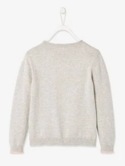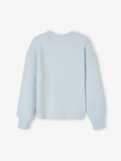Pull fille en maille mousseuse toute douce 76% acrylique, 20% polyester, 4% élasthanne.