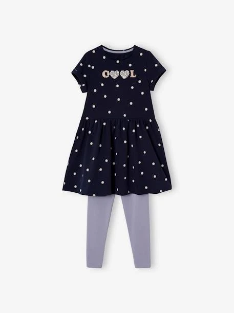 Cet adorable ensemble robe + legging est aussi mignon que confortable ! La robe s’amuse entre fantaisie et touches brillante. Le legging permet toutes les acrobaties. Un ensemble confortable drôlement pratique au quotidien.