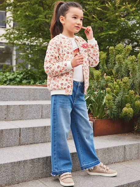 Pantalon fille en denim pur coton.