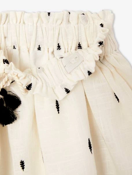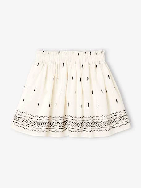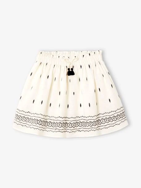 Comme un petit air d’ailleurs… Une jupe parsemée de broderies et un aspect lin pour un effet authentique. Une inspiration ethnique-chic, un bel exemple de notre savoir-faire et une idée toute trouvée pour renouveler le dressing des filles !