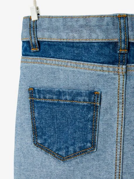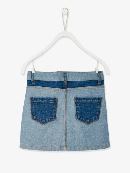 Jupe fille en denim 99% coton, 1% élasthanne.