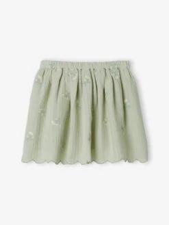 Jupe Brodée En Gaze De Coton Fille Vert D’eau Imprimé – Vertbaudet
