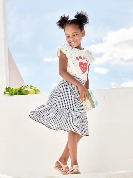 Un petit air sixties pour cette jupe à carreaux vichy qui donne envie de flâner joyeusement dés les beaux jours. Une idée toute trouvée pour changer de look et renouveler le dressing de votre fille. Un grand volant, un effet gaufré et les carreaux vichy pile dans la tendance vintage. Nous, on adore… et vous ?