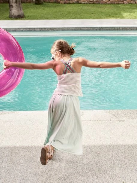 Coup de coeur pour cette jupe longue facile à associer à tous leurs petits tops. Look éthnique ou tendance exotique, elle peut facilement s’adapter à tous les styles.