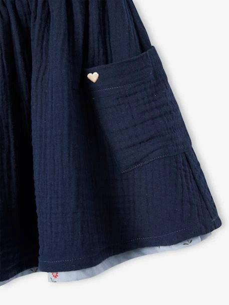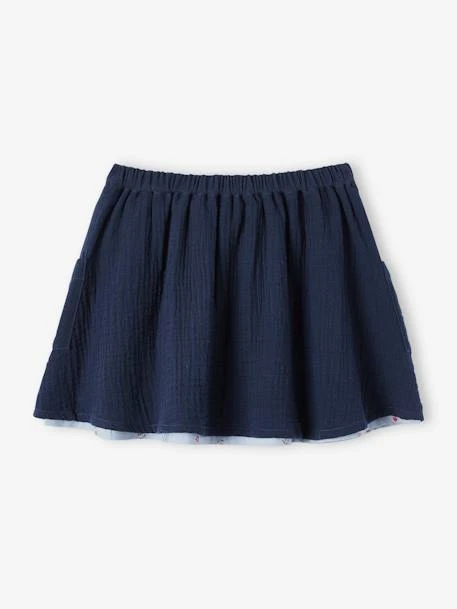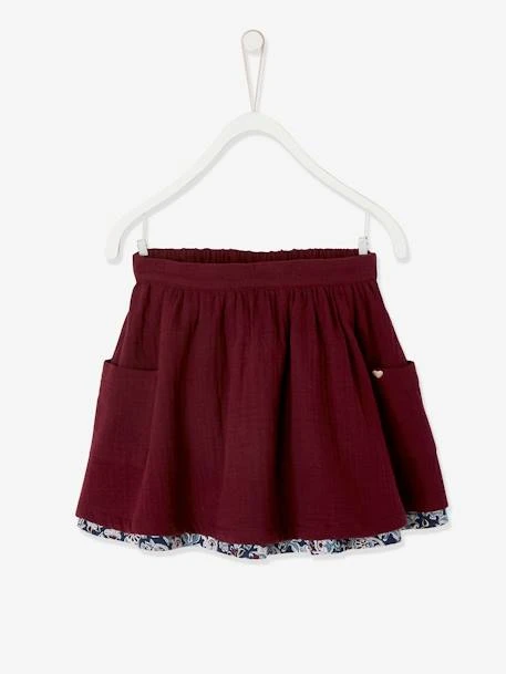 Jupe fille réversible : Côté uni en gaze pur coton, matière légère naturellement gaufrée.