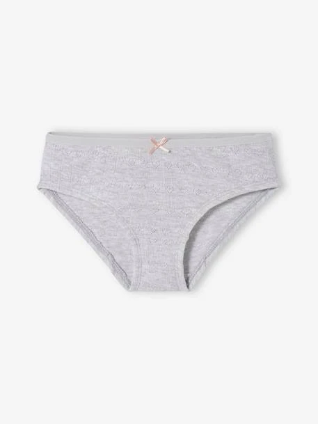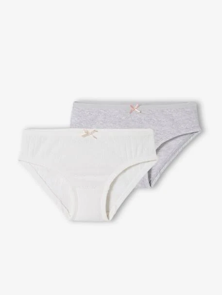 Lot de 2 culottes fille en maille ajourée 100% coton, coloris gris chiné 98% coton, 2% polyester.