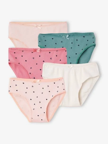 Lot de 5 culottes fille en maille côtelée 95% coton, 5% élasthanne.