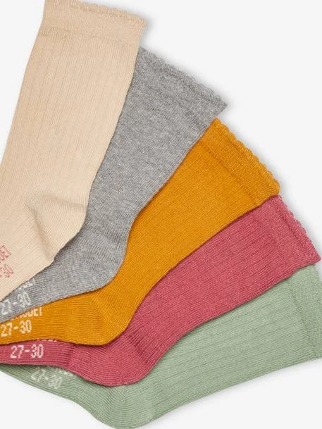 Lot de 5 paires de chaussettes fille en maille côtelée 71% coton, 28% polyamide, 1% élasthanne.