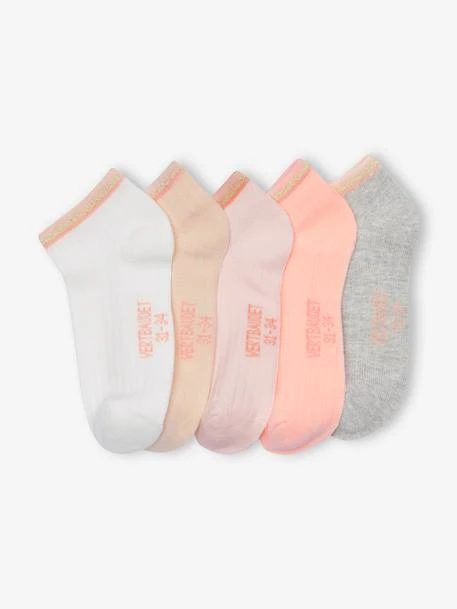 5 paires de soquettes fille en maille 71% coton, 24% polyamide, 3% élasthanne, 2% polyester.