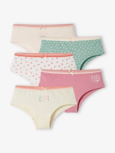 Lot de 5 shorties fille en maille stretch 95% coton, 5% Ă©lasthanne.Â