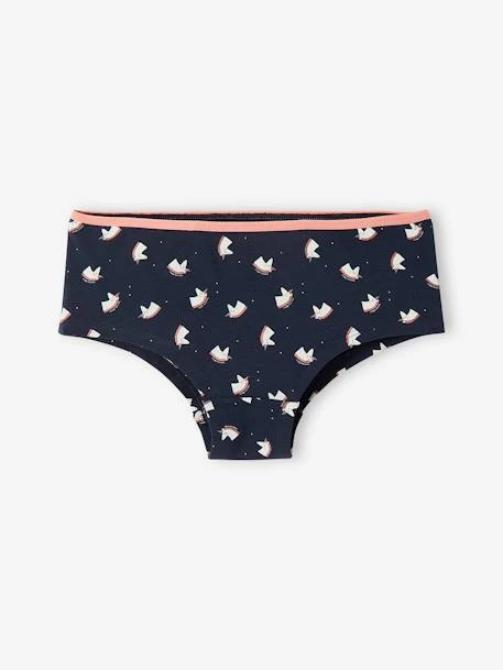 Lot de 5 shorties fille en maille stretch 95% coton, 5% élasthanne, sauf coloris gris chiné 92% coton, 4% viscose, 4% élasthanne.