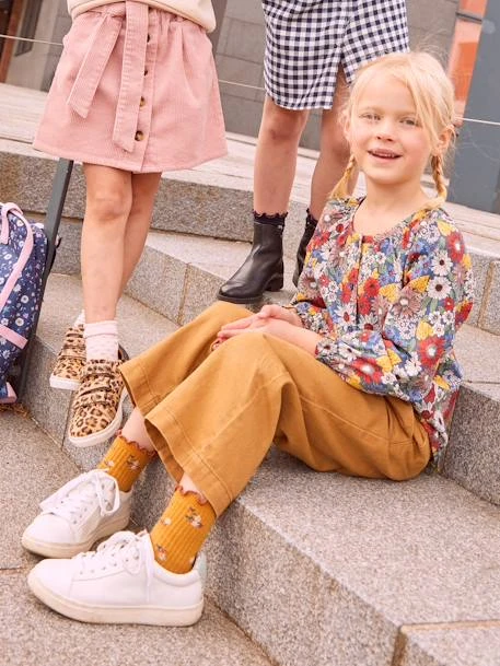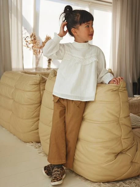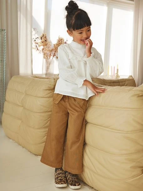 Tous les codes du moment ce pantalon : une coupe large et une nouvelle longueur pour changer de style. On aime le coloris tendance facile à associer à la collection et la ceinture style « paperbag ». A associer à leurs T-shirts préférés ou à un sweat imprimé.