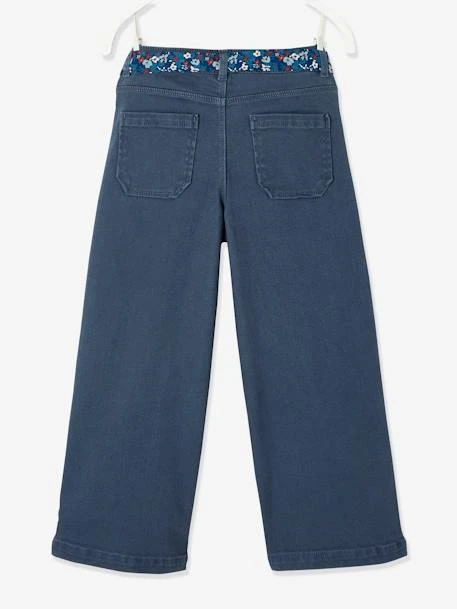 Une coupe large 7/8ème pour changer de style et une ceinture fleurie pour la touche bohème pile dans l’air du temps…. des détails qui font la différence ! Un pantalon dans un joli coloris bleu facile à associer à leurs tee-shirts préférés ou à un pull fantaisie.
