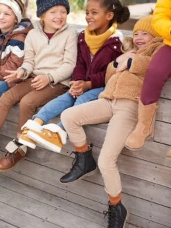 - aille ajustable de l’intérieur par élastique et boutons (avec patte cache-boutons élastiquée : aucune gêne pour l’enfant, plus pratique pour les parents)