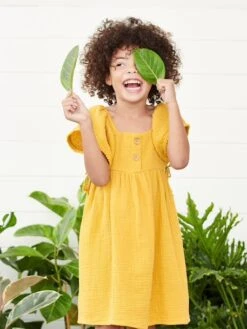 Robe En Gaze De Coton DĂ©tails Fantaisie Fille Moutarde – Vertbaudet