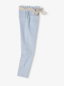 Pantalon Paperbag Rayé Fille Et Sa Ceinture Imprimée Fleurs Rayé Bleu – Vertbaudet