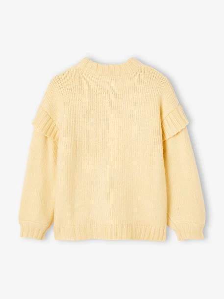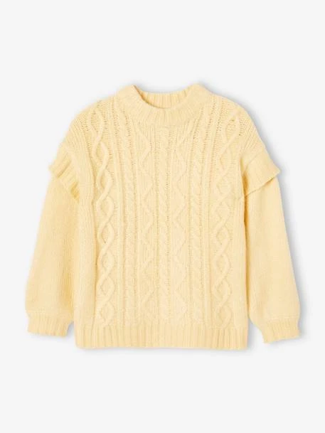 Joli jeu de torsades pour ce pull authentique et chic. On aime les volants aux épaules et la maille mousseuse ultra douce. Ce pull plein de fantaisie réchauffe l’hiver avec charme et complète à merveille leur dressing.