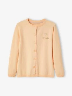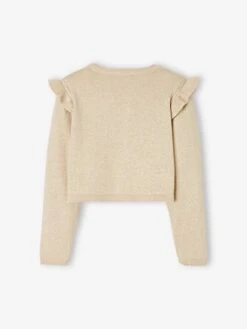 Gilet à Volants En Maille Irisée Fille Beige Doré – Vertbaudet