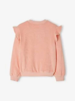 Sweat à Volants Brodés Fleurs Fille Rose Poudré – Vertbaudet