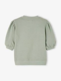 Sweat Motif « love » Fille Manches Boules Courtes Vert D’eau – Vertbaudet