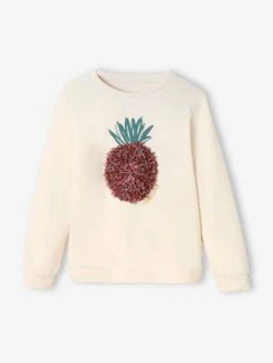 Sweat Motifs Fleurs Anim Irisée Et Bouclettes Fille Manches 3/4 écru – Vertbaudet