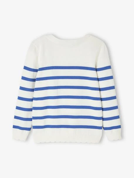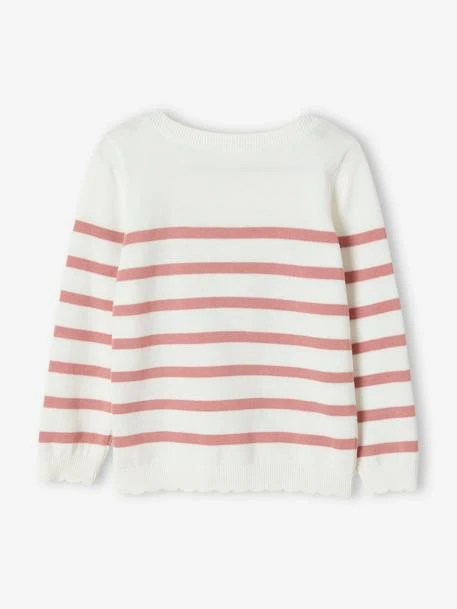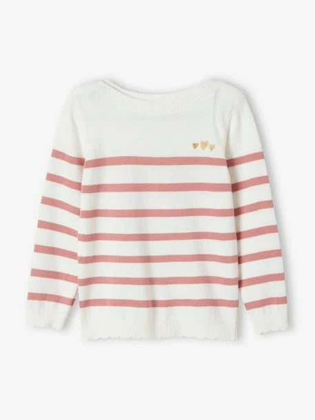 Et voguent les petits looks stylés avec ce pull marinière revisité ! Une jolie succession de détails : des coeurs brodés et une finition festonnée qui apporte la touche stylée pile dans l’air du temps… Ce pull rayé craquant s’accordera parfaitement à leur jean ou à une jupe !