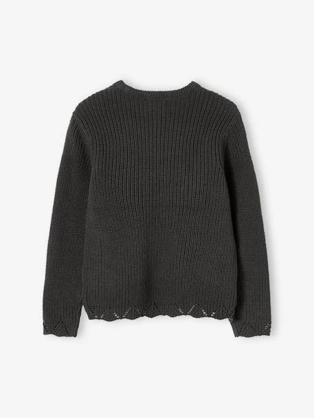 Pull fille en maille fantaisie toute douce 70 % coton, 30% polyamide.