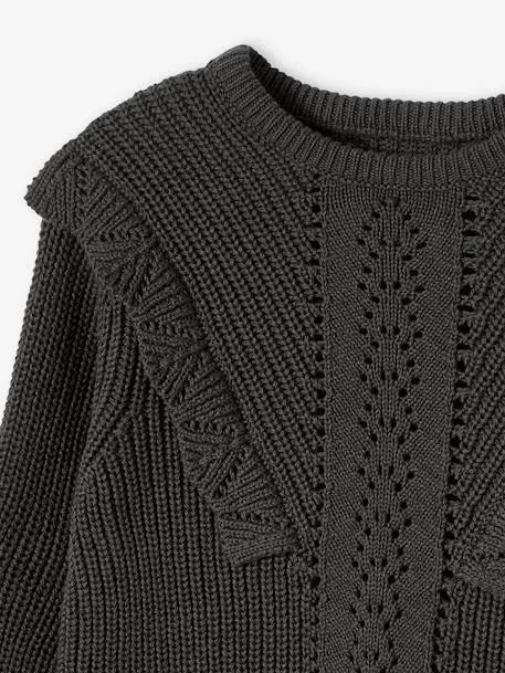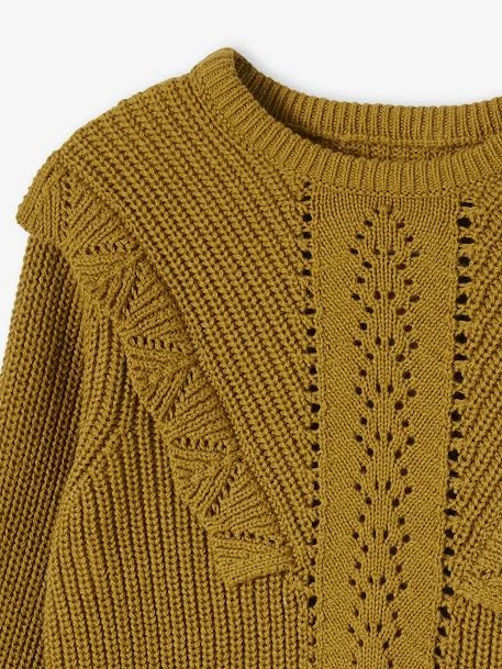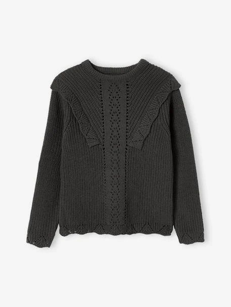 Looks à croquer assurés ! Jeu de mailles fantaisie et succession de détails pour ce pull raffiné. On aime les volants et la finition festonnée. Ce pull plein de fantaisie renouvelle à merveille le dressing des filles !