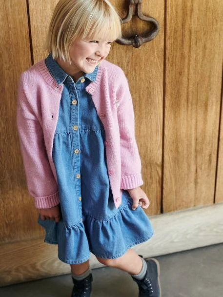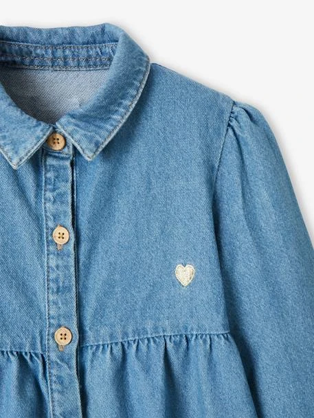 Pas question de zapper l’ incontournable robe en denim ! Pratique et facile à associer, cette robe est juste indispensable pour compléter le dressing de votre fille. Elle va adorer le volant qui tourne et les broderies coeurs irisées pour la touche charme. Nous on craque, et vous ?