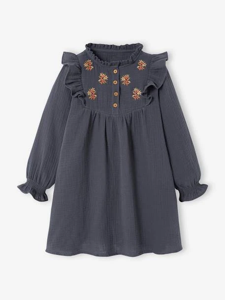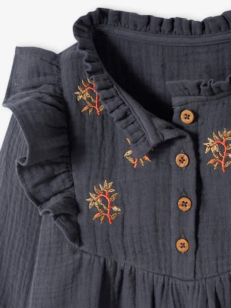 Robe fille en gaze pur coton, une matière légère à l’aspect naturellement gaufré.
