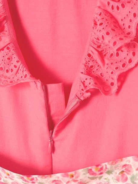 Une robe de cérémonie sublimée par des détails en broderie anglaise et une jolie ceinture imprimée fleurs ! L’ encolure volantée et les jolies finitions apportent la touche finale. Une robe parfaite pour tous les joyeux moments de fêtes à partager en famille.