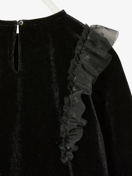 En piste pour une nuit magique… Des volants en tulle parsemés d’étoiles irisées, du velours… il n’en faut pas plus pour donner un air de fête à cette robe. Elle a tous les jolis détails pour feront le bonheur de votre princesse.