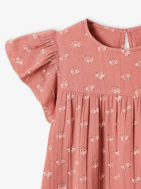 Robe fille : En gaze pur coton doublée, matière légère naturellement gaufrée.