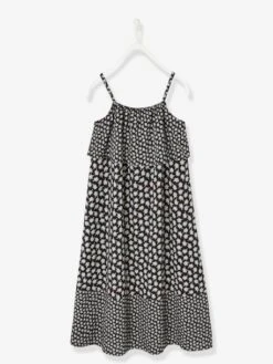 Robe Longue à Bretelles Imprimée Fille Encre Imprimé – Vertbaudet