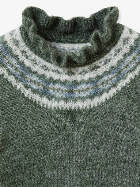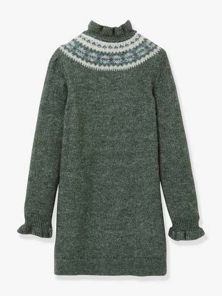 Incontournable en hiver, la robe en tricot joue la touche tendance avec ses froufrous fantaisie. Sur une maille chinée, réchauffée de laine et de mohair, un superbe jacquard s’exprime en collier, l’effet est délicat et raffiné.
