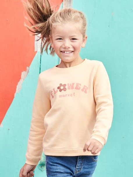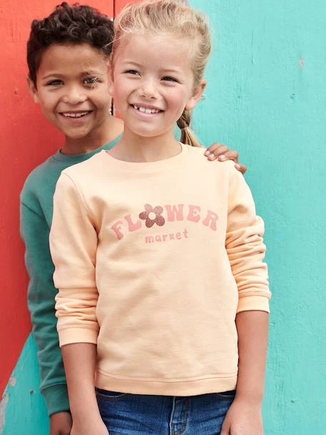 Sweat fille en molleton 76% coton, 24% polyester, doux à l’intérieur.