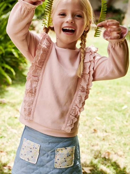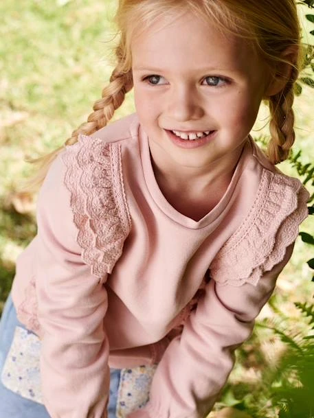 Le sweat se réinvente en pièce mode craquante ! Les volants brodés fleurs soulignés de dentelle macramé apporte la touche bohème pile dans l’air du temps ! Des détails délicats qui n’échapperont pas aux petites coquettes ! Une belle idée pour renouveler le dressing et un look facile à associer à un jean au quotidien.