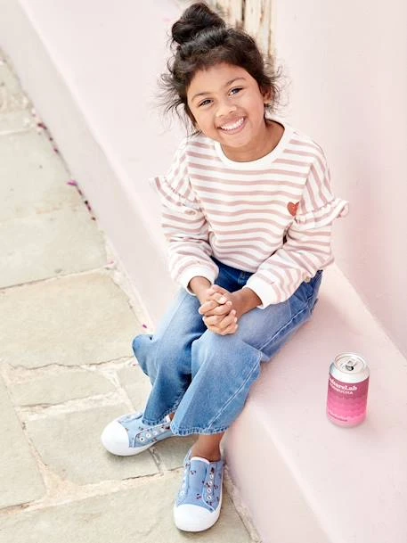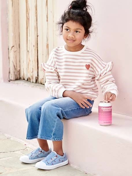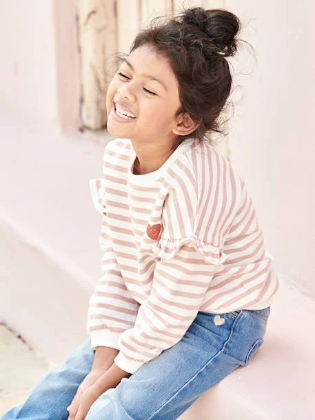 Un esprit marinière, des volants charmants… et hop le style est joué ! Ce sweat marinière créé la surprise avec ses volants et son petit coeur fantaisie… Des détails craquants qui n’échapperont pas à votre fille ! Une chouette idée pou renouveler son dressing . A porter avec son jean préféré ou un pantalon large et des baskets pour un look pile dans l’air du temps.