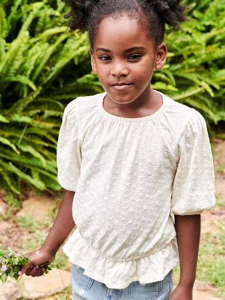 - T-shirt blouse brodé fleurs fille