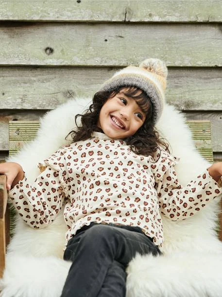 T-shirt fille en maille côtelée fantaisie 95% coton, 5% élasthanne