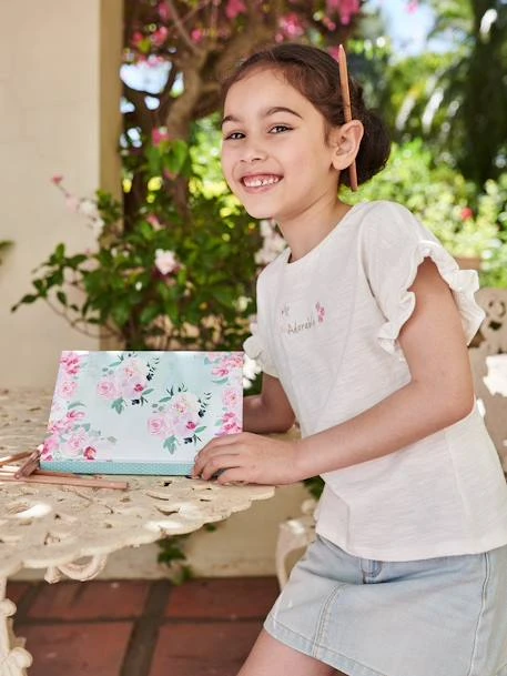 - Broderie « adorable » placée, motifs fleurs imprimés