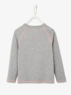 T-shirt Fille « club Des Sirènes » Détails Fantaisie Manches Longues Gris Clair Chiné – Vertbaudet