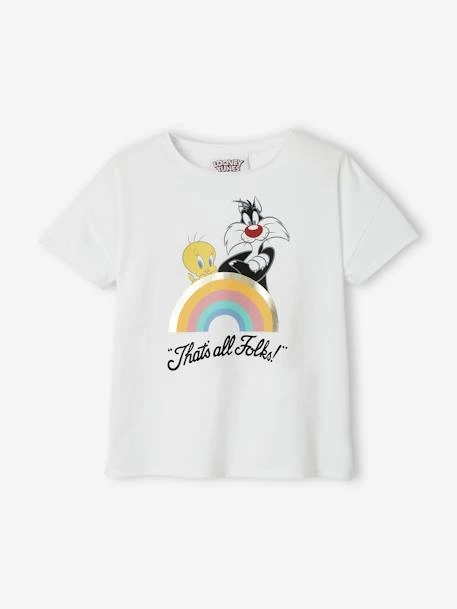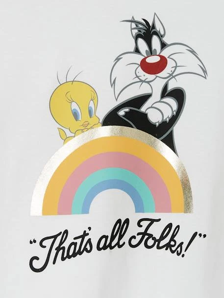 Titi et Grosminet sont les héros Looney Tunes® préférés de votre petite fille ? Elle sera ravie de les retrouver sur ce T-shirt derrière un arc-en-ciel doré !
