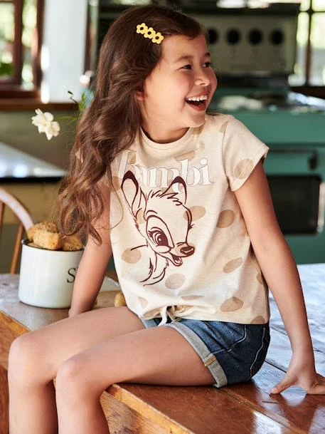 L’adorable Bambi s’affiche sur ce T-shirt Disney® tendance et girly avec son imprimé pois et son noeud fantaisie devant ! Les petites filles ne pourront que craquer…