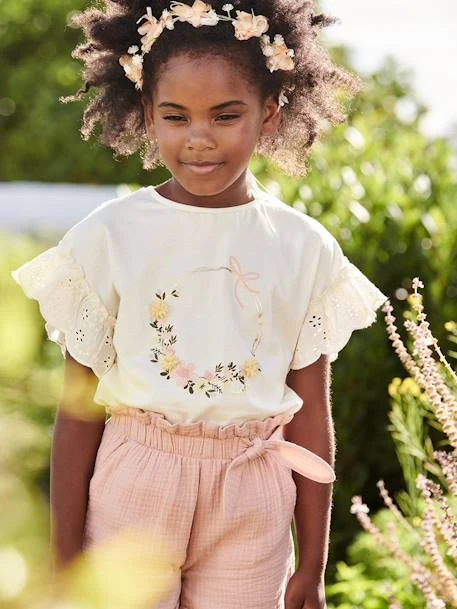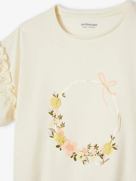 Avec ses manches volantées en broderie anglaise et sa couronne irisée, ce tee-shirt raffiné invite à la fête. Il est parfait associé à une tenue de fête et apporte une touche romantique au quotidien. Ce tee-shirt va vite devenir votre préféré !