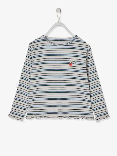 C’est le moment de craquer pour ce T-shirt rayé ! La bonne idée de nos stylistes ? Renouveler le tee-shirt avec une maille côtelée et un petit motif coeur irisé… les filles adorent ! A porter avec un jean ou une jupe pour un style plus girly.